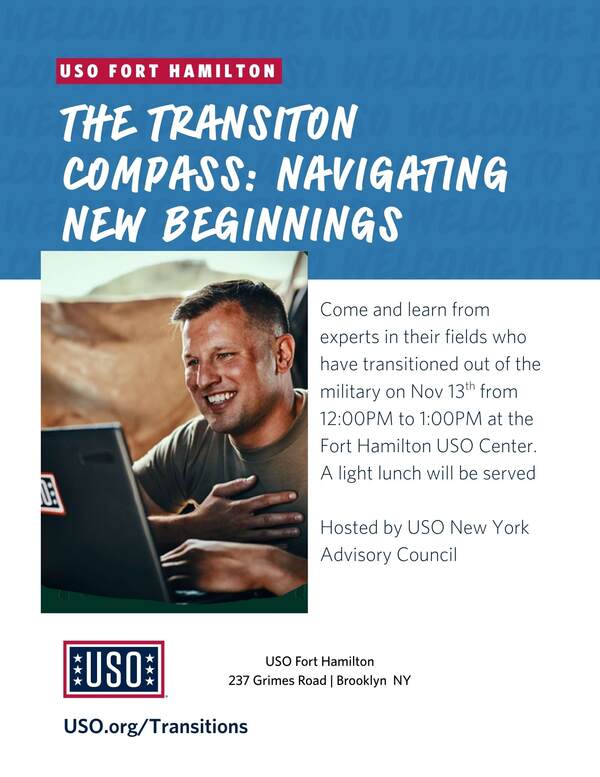 Why Attend: Learn practical strategies for a successful transition Share experiences and best practices Connect with resources and support networks Sign-up for USO’s Transitions Program to access ongoing support, guidance and exclusive opportunities designed to help service members thrive after leaving the military
