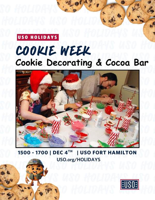 Join us at our Fort Hamilton USO center for some holiday cheer, cookie decorating and a hot chocolate bar with all the fixings to warm you up.