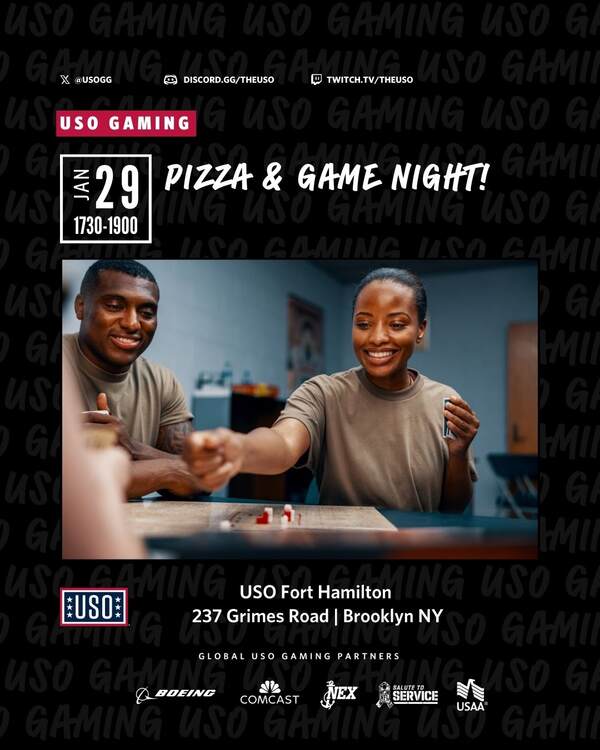 Join USO Fort Hamilton for a fun Game Night of board games and pizza! You can even bring your own favorite board game.