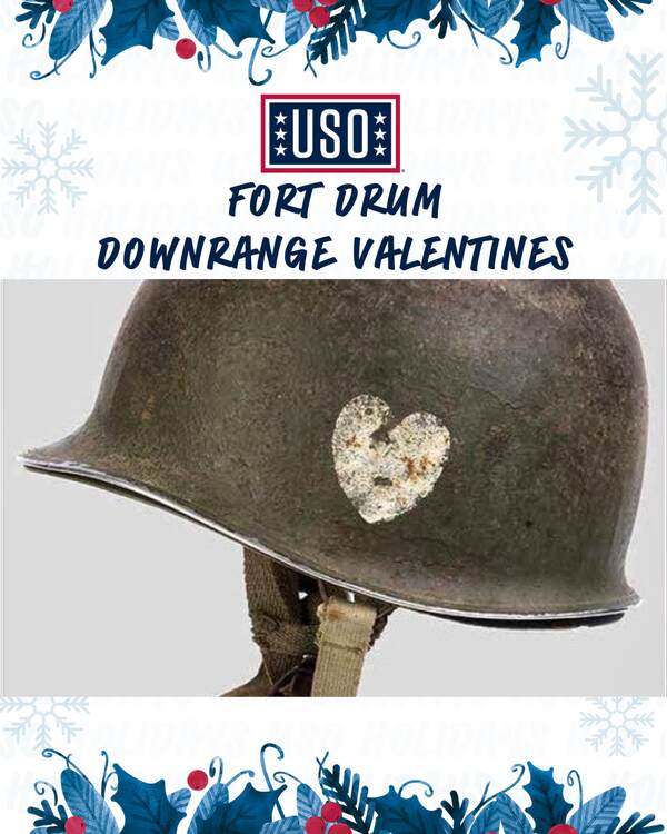 Join us at your Fort Drum USO Center as we write and decorate Valentine’s Day cards for our battle-buddies heading downrange. Cards will be distributed at the Rapid Deployment Facility along with care packages for deploying Soldiers. Oh, and there will be sweets to celebrate Valentine’s Day, as well!