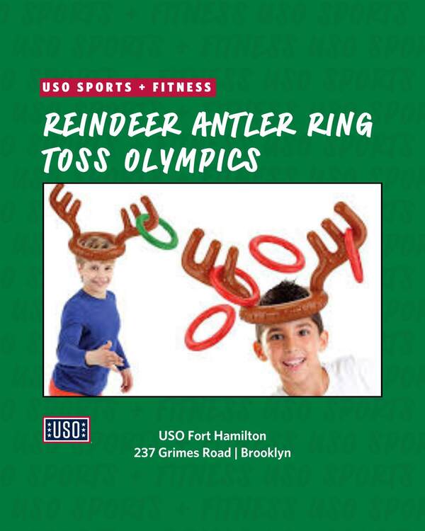 Bring your Olympic spirit to USO Fort Hamilton for our Reindeer Antler Ring Toss Olympics! Have fun playing a lively game of ring toss and warm up from the cold with a hot chocolate with all the fixings!